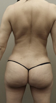 34 year-old female who presented to Dr. Shridharani’s cosmetic surgery office in New York City who previously had liposuction with fat transfer to the buttocks/Brazilian Butt Lift with a DIFFERENT surgeon. She stated that she underwent liposuction with fat transfer to her buttocks in Miami several months ago, but she was unhappy with the contour irregularities to her buttocks. She requested non-surgical management of the contour irregularities and a tummy tuck. She underwent two treatment cycles of Scultpra injections to her buttocks. She is pictured here 1 week prior to her treatment and 8 weeks after her second series of injections.