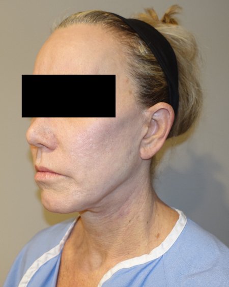 60-year-old female presented to Dr. Shridharani’s plastic surgery practice, LUXURGERY, in NYC with the desire to clear her face of acne scarring, divots, wrinkles and creases in her neck. The patient elected to undergo laser resurfacing in order to improve overall skin quality, tone, and texture. The patient is pictured here 1 week prior to her laser resurfacing treatment and 1 year after her procedure. She is excited about her results, as it has exceeded her expectations.